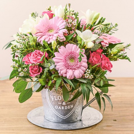 A natural Arrangement inspired by nature. Pinks and creams. Perfect for any occasion